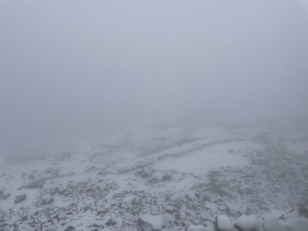 With all the rain and snow, the track has now been converted to a stream. It takes some time to make the climb in the slippery snow conditions. On the way down I meet some people and ask about the weather forecast for the coming days. Supposedly it will continue to snow/rain.