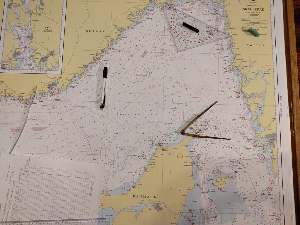 It is an early morning start at Långedrag harbor. When I arrive Andréas and his father are prepping the boat for our Skagerak crossing. The plan is to sail straight from Gothenburg, Sweden to Kristiansand, Norway. A crossing of about 120 nautical miles, estimated to take around 25-30 hours. We will try to navigate by dead reckoning – navigating only based on speed and direction, no GPS allowed.
