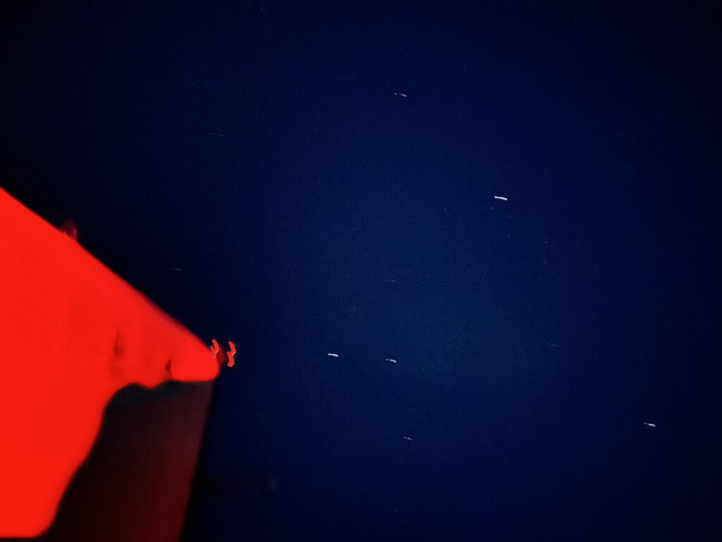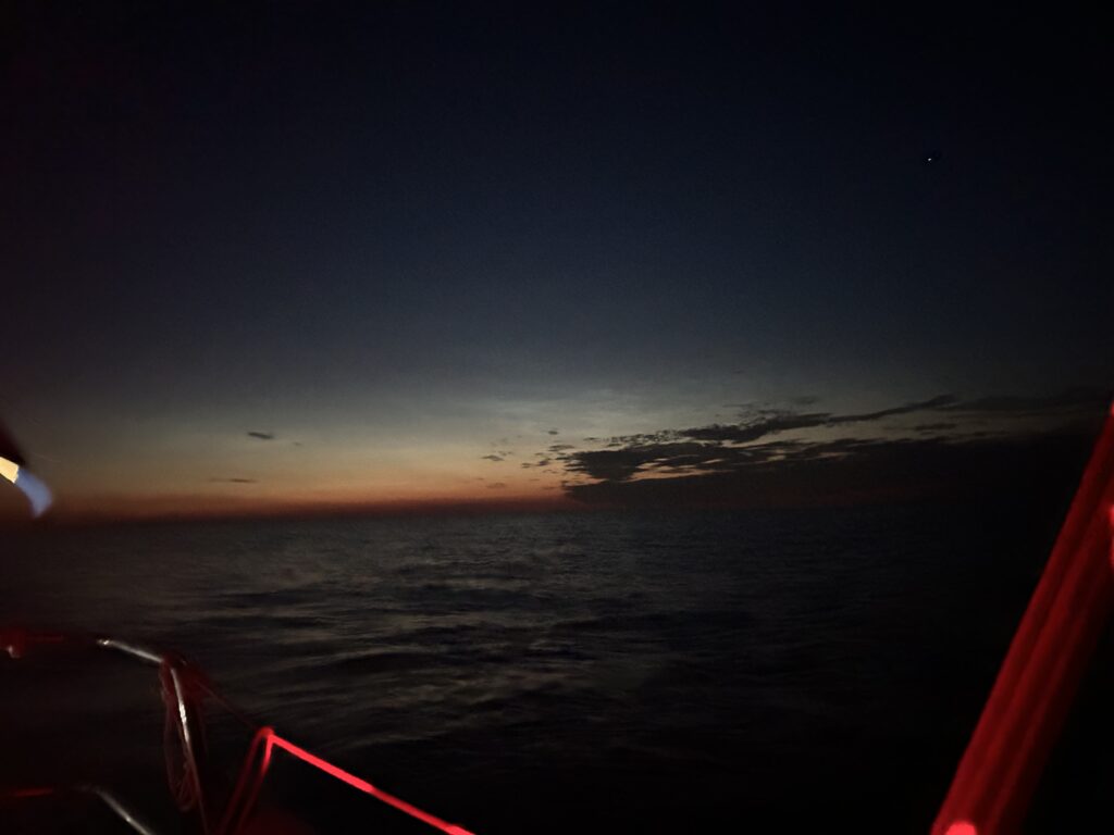 I find it serene, at least during my first shift, to sit in the middle of the ocean, under a crystal clear night sky, with no land or other boats in sight. It makes you feel small and humble, and you forget about the everyday problems. Andréas did, however, oversell the night sky slightly. Turns out it does not get pitch dark in July, satellite watching is for other parts of the year.