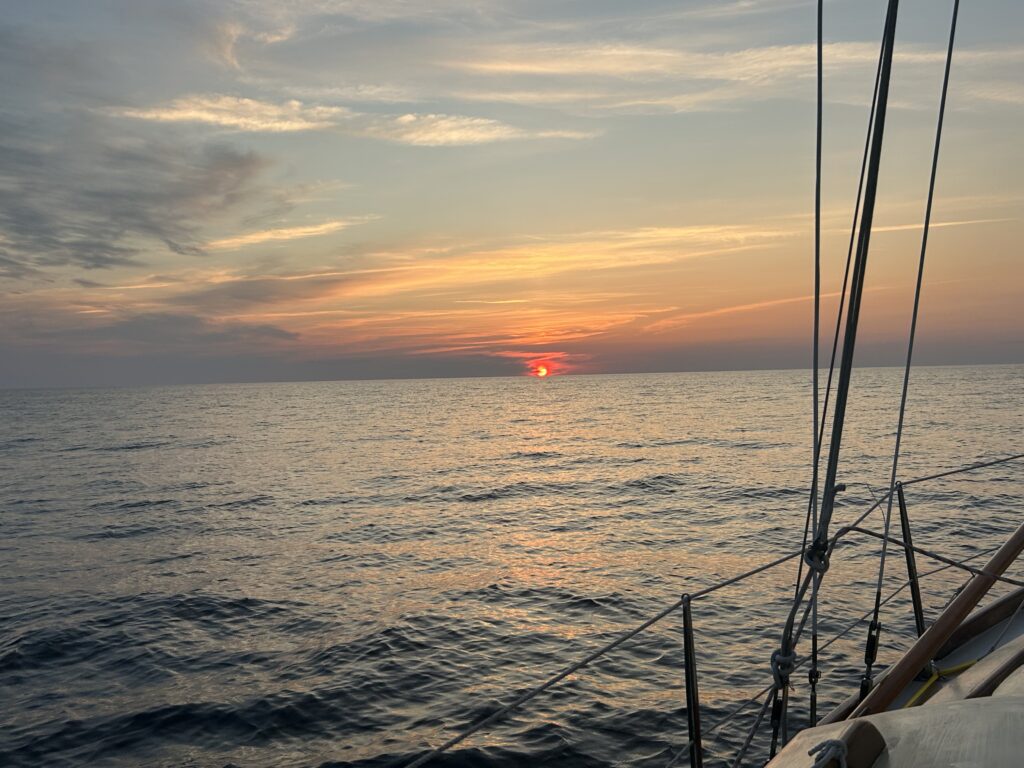 This time the crossing is much more smooth. The sea is relatively calm and the wind is gentle, but still strong enough to push us forward at a good pace. Once again we alternate between steering and sleeping in shifts.