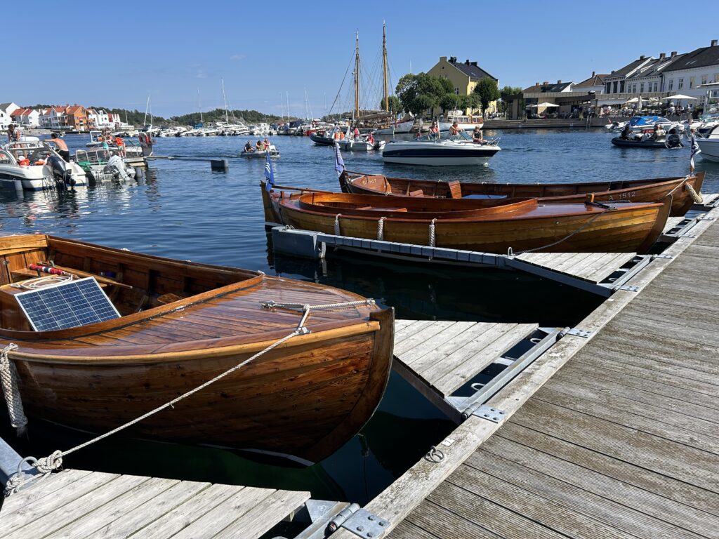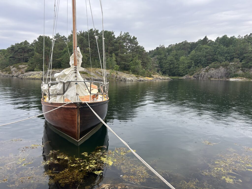 We make our way to Risör where we anchor in the harbour. Risör is a very charming coastal town – and that means something when coming from me – with well-preserved wooden houses, an idyllic archipelago, and a strong boat culture. Every year the town arranges a wooden boat festival. We are one week too early to participate in this festival, but there are already many wooden boats on site, or maybe they are here the whole year around. Among all the wooden boats, Andréas is like a small child in a candy-shop.