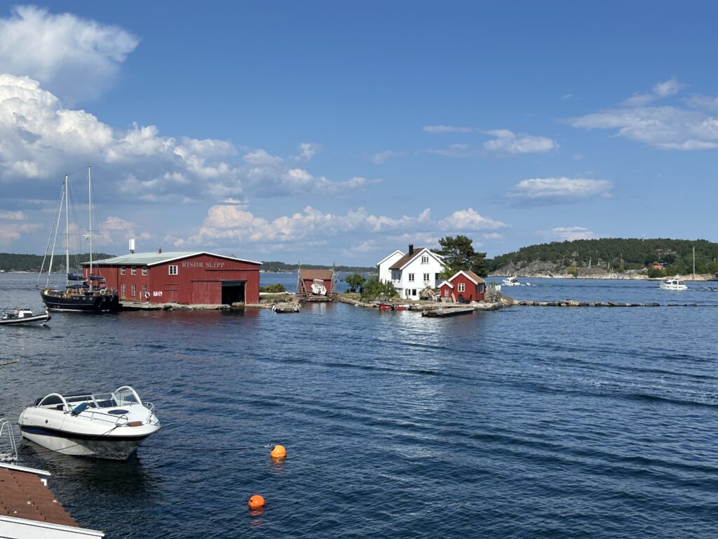 Today we are heading north, towards Risör, facing nothing but head-winds. We start off by relying on the iron sail for a couple of hours, until Andréas decides it is time for me to learn how to tack against the wind. Apparently, the best place to learn this skill is in a narrow and trafficked canal; Full thrust against the cliffs, narrow turn, move the sail to the other side, avoid other boats, try to steer the boat as sharply into the wind as possible without oversteering, and repeat. We keep going until we have had enough, tacking against the wind is not particularly fast, especially as we are going towards a current that continuously pushes us backwards. The iron sail gets to roar again.