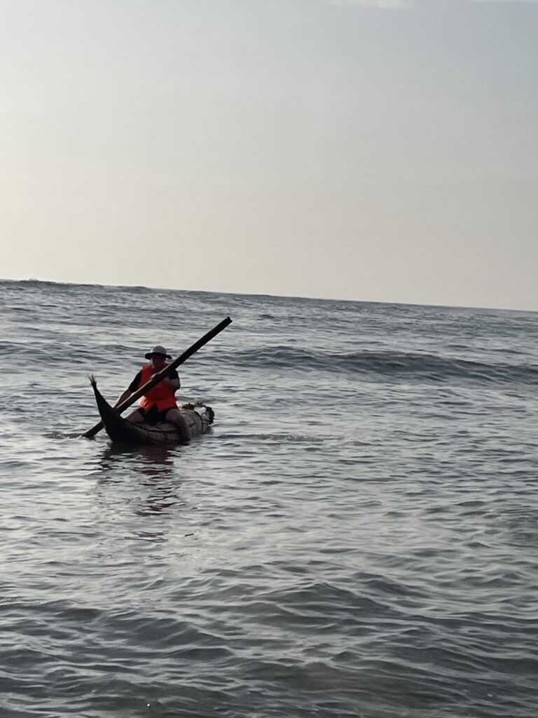 In the afternoon I try paddling a Caballitos de Totora — a reed watercraft that has been used by Peruvian fishermen for 3000 years. I went to the beach and rented one for 1 hour, it cost 70 soles. It was pretty fun, but the renters do not let you paddle very far due to the high waves, which resulted in me paddling in circles (not that fun).