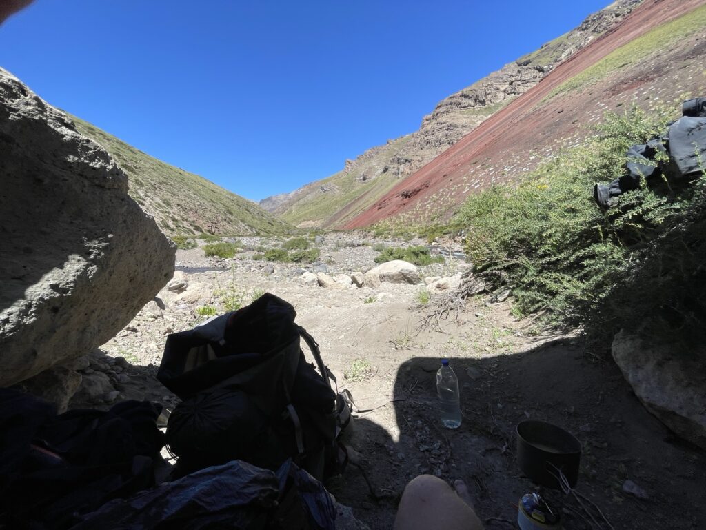 Before continuing hiking in the valley I take a short break to cook my dinner. Red lentils with half of my ten eggs and a rich amount of olive oil. When you hike, everything tastes good.