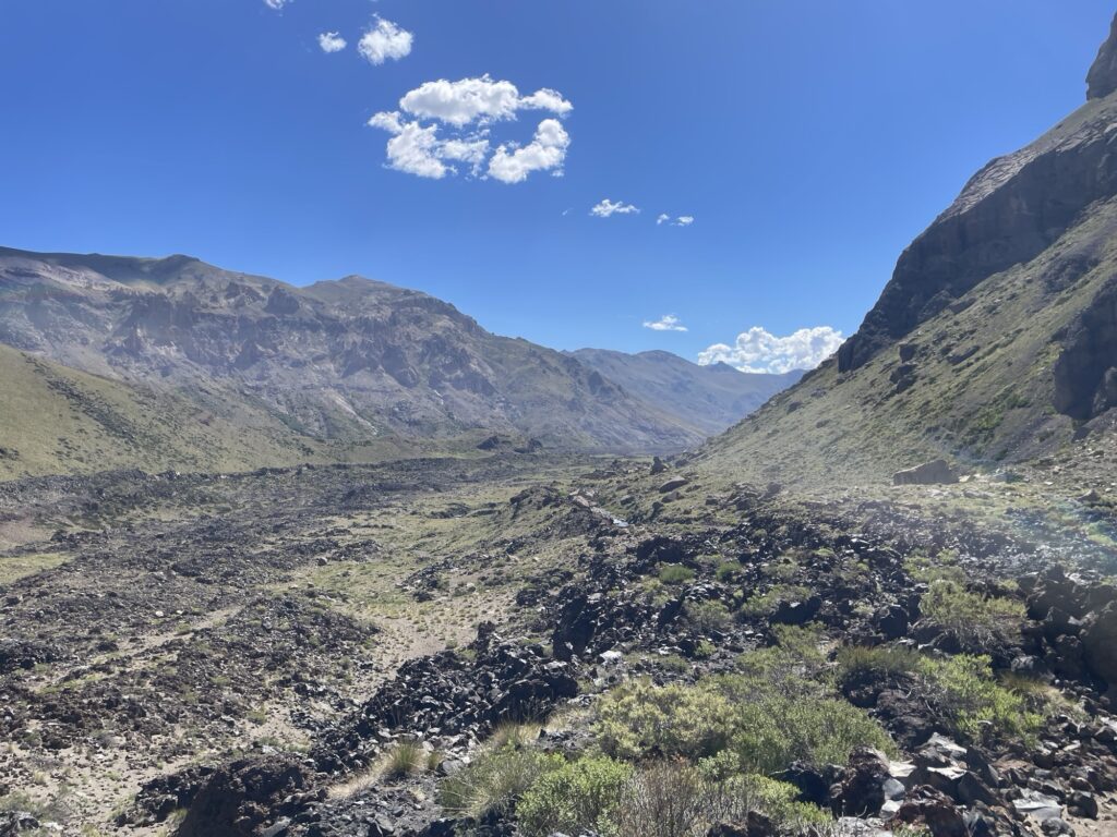 The valley hiking is a combination of rock, grass, and sand. The trail is poorly maintained, as most of the GPT it is not exactly a trail, but sporadic patches of diffuse cattle tracks. Eventually the trail takes me to a small puesto, that at the time was empty, from there a small, and sandy, dirt track runs all the way to Carrizales.
