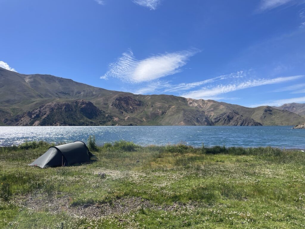 Leaving the police station it is back to walking on cattle trails and off-trail. I enter another valley and start climbing upward towards Laguna del Dial. I found a very nice campsite right next to the lake and decide to camp there. It is still early in the day, but it has been some long previous days and I’m craving a bath given the intense heat — today I have consumed 7 liters of water — so that is exactly what I do, I take a bath and tuk in for the night.