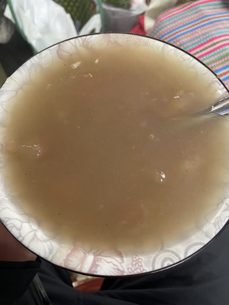 Later in Huaraz, however, after much searching and asking around, I managed to find a street vendor selling Tocosh. She had cooked the rotten potatoes to a very slimy porridge. As I understand, that is how it is traditionally consumed. I forgot to take a picture of the sack of potatoes she had, but they sure were rotten, all white of mold. The Tocosh was not bad, but it was not exactly good either. I do not think I will be having more Tocosh.
